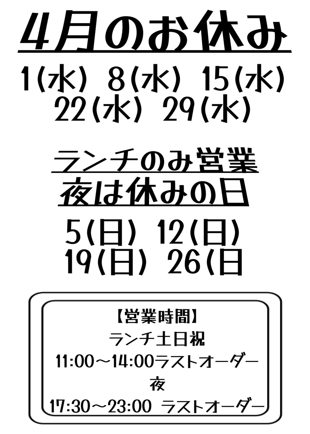 ご来店を予定されているお客様は、お間違いのないようご確認くださいませ。ご不便をおかけいたしますが、よろしくお願いします。